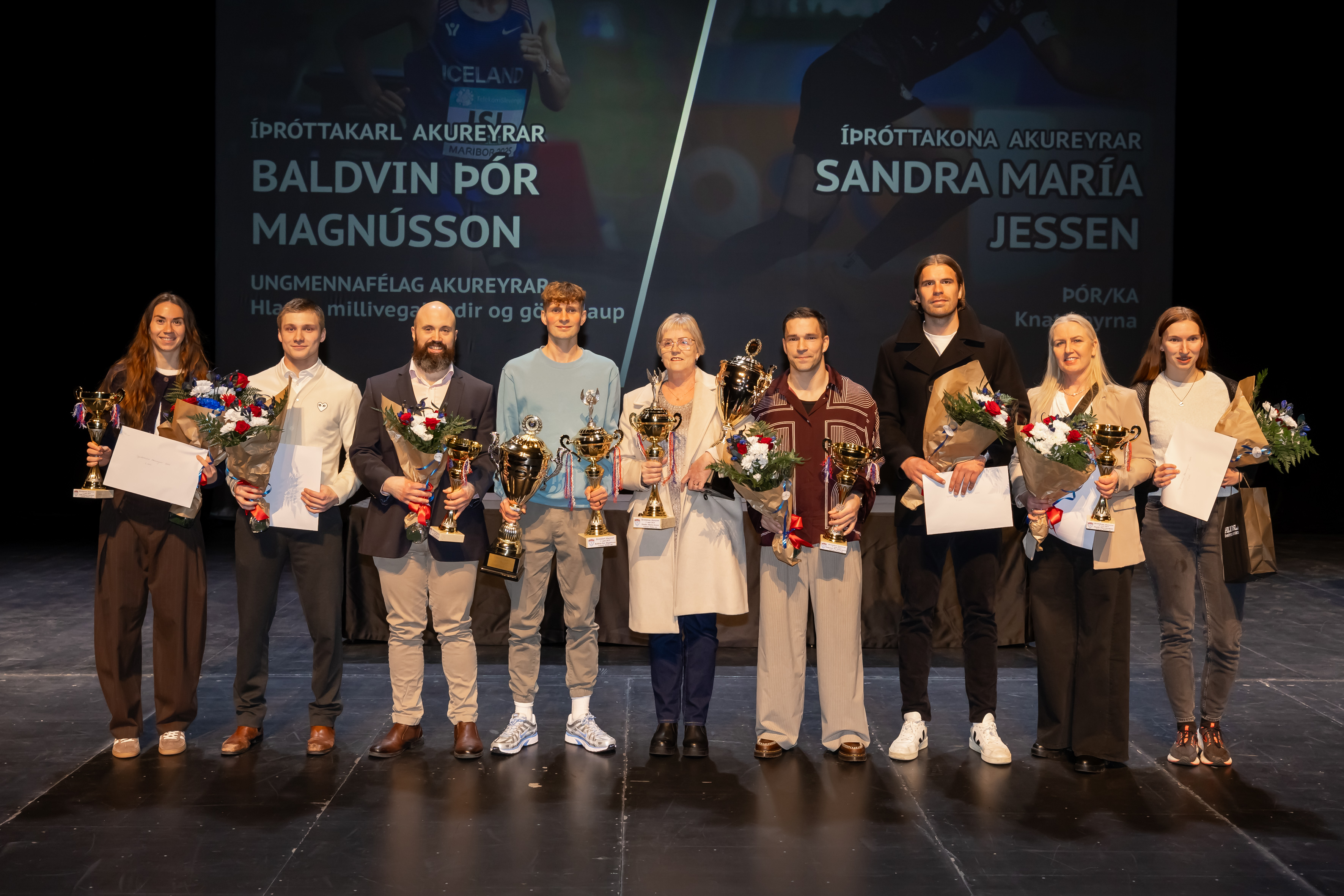 Baldvin Þór Magnússon er íþróttakarl Akureyrar í annað sinn. Baldvin Þór er fæddur á Akureyri en flutti ungur til Bretlands með foreldrum sínum. Hann fór á íþróttastyrk til Bandaríkjanna í háskólanám og æfði þar og keppti í fimm ár. Hann hefur nú snúið aftur til Bretlands og æfir þar með sterkum hópi hlaupara. Baldvin heldur góðum tengslum við heimalandið og kemur reglulega heim og tekur þátt í mótum, nú síðast á RIG síðastliðna helgi. Baldvin er einn allra sterkasti millivegalengda- og langhlaupari sem Ísland hefur átt. Hann hefur náð framúrskarandi árangri á undanförnum árum í hlaupum frá 1500 m og upp í 10 km hlaup. Hann á sem stendur sautján virk Íslandsmet, sex í yngri aldursflokkum og ellefu í flokki fullorðinna. Helsta íþróttaafrek hans á árinu 2025 voru Íslandsmet í 1500 m innanhúss 3:39,67, Íslandsmet í 3000 m innanhúss 7:39,94, Íslandsmet í 10 km götuhlaupi 28:37, Norðurlandameistari í 3000 m innanhúss, Íslandsmeistari í 1500 m utanhúss, sigur og brautarmet í 10 km í Reykjavíkurmaraþoni.