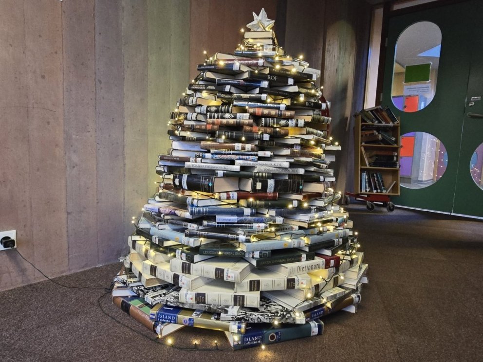 Á heimasíðu VMA er sagt frá skemmtilegri hefð sem skapast  hefur þar á bæ, en þær Hanna Þórey og Dagný bókasafnskonur hafa  reist heilmikið bókajólatré.