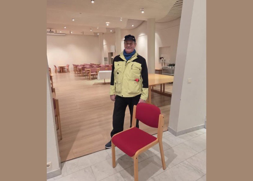Þetta er hann Bryngeir (sjá meðfylgjandi mynd), sóknarnefndarmaður og kórmeðlimur í Akureyrarkirkju til margra ára. Hér er hann að koma með nokkra stóla sem hann og Lilja Guðmundsdóttir ( og nú vantar fleiri hendur) hafa pússað upp og yfirdekkt með þessu nýja rauða efni sem kemur líka svona fallega út.
