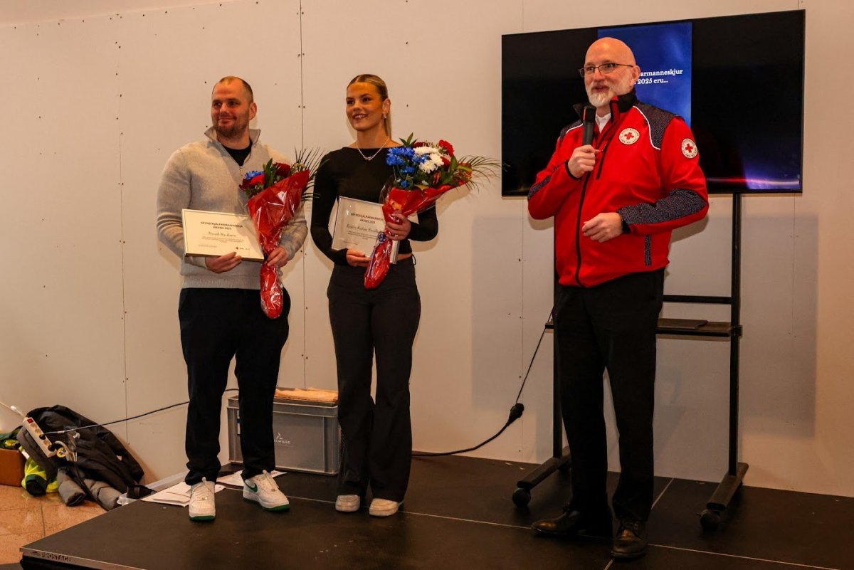 Feðginin Hinrik Hauksson og Kristín Andrea voru í dag valin skyndihjálparfólk ársins fyrir að bjarga lífi Bríetar, dóttur Hinriks og systur Kristínar, þegar hún fékk hjartastopp í ágúst í fyrra. Rauði krossinn veitti þeim viðurkenningu á 112 deginum sem haldinn var á Glerártorgi um liðna helgi