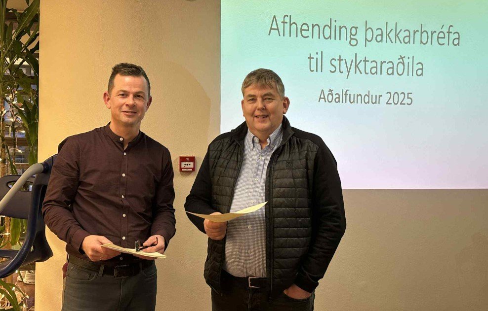 Á fundinum afhenti stjórn félagsins helstu styrktaraðilum sínum þakkarbréf fyrir veittan fjárstuðning og voru alls 19 félagasamtök og fyrirtæki sem veittu þeim viðtöku.