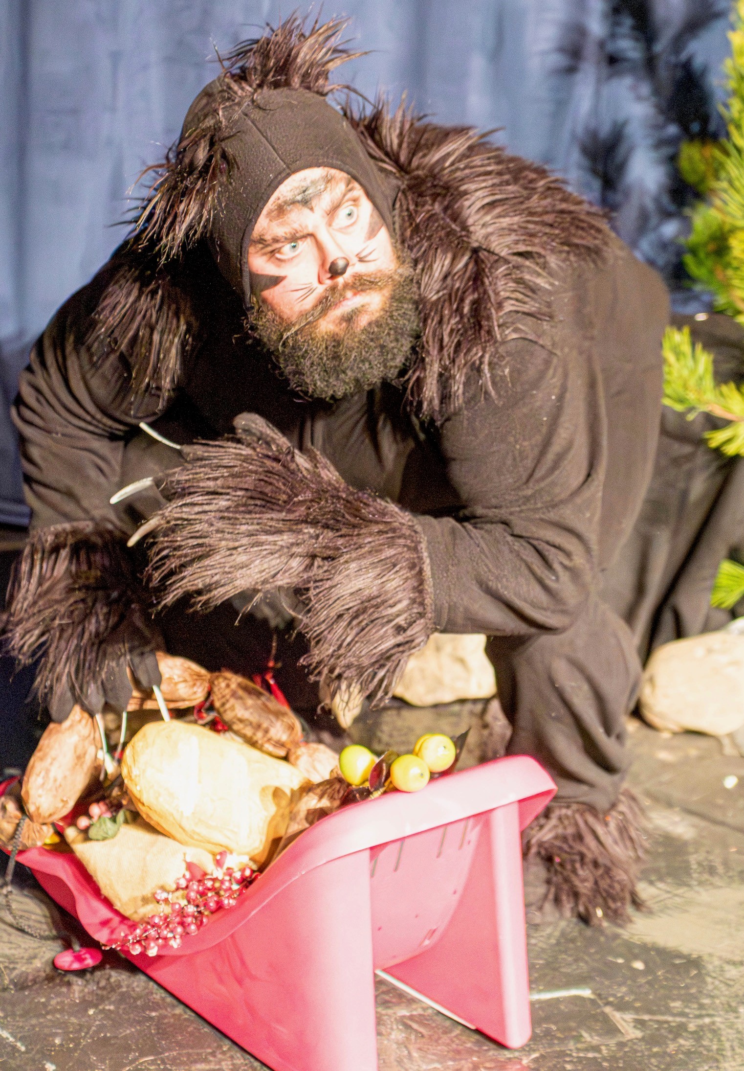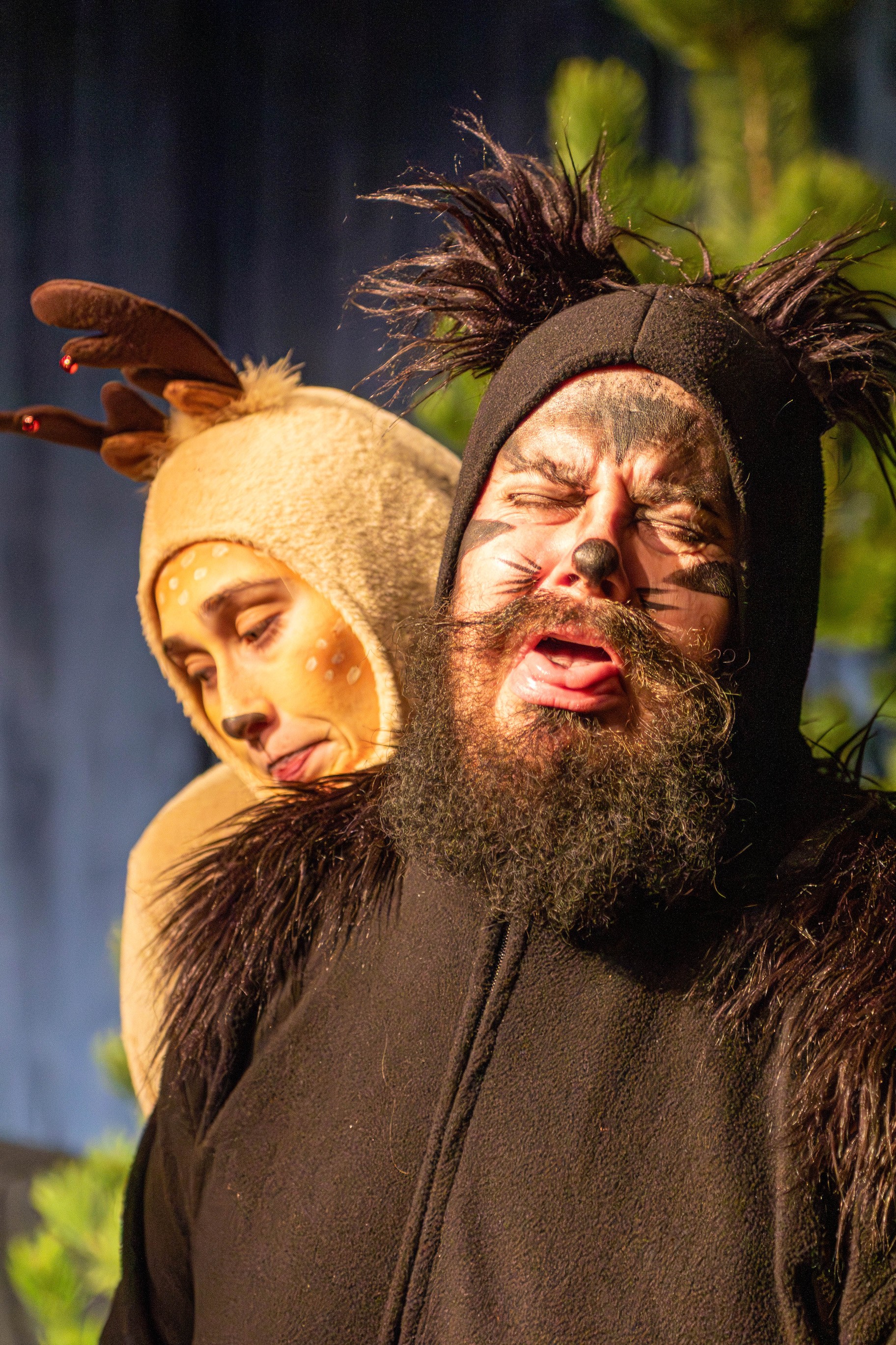Hallur Örn Guðjónsson leikur Jólaköttinn og Birgitta Brynjarsdóttir hreindýrið. Hér eru þau í hlutverkum sínum.