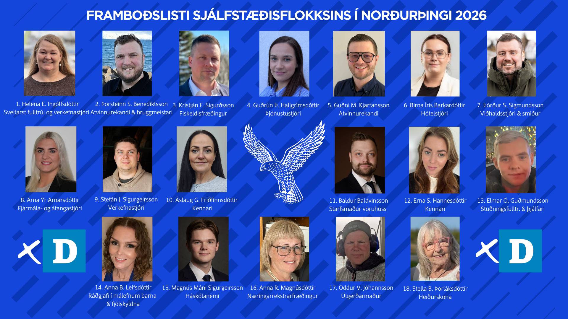 „ Ég er þakklát fyrir traust Sjálfstæðisfólks í Norðurþingi til að leiða lista flokksins í komandi sveitarstjórnarkosningum í Norðurþingi og ég hlakka til samstarfsins við þennan öfluga hóp sem skipar listann. Ég hlakka sömuleiðis til kjörtímabilsins sem framundan er því við erum vel í stakk búin til að takast á við þær krefjandi aðstæður sem nú eru uppi og á sama tíma erum við nær en áður ákvörðun næsta fyrirtækis um að staðsetja sig á Bakka, með öllum þeim tækifærum sem því munu fylgja. En þar til það gerist er forgangsatriði að sýna ábyrgð í rekstri, samhliða því að veita íbúum og fyrirtækjum sem hér eru áfram gæða þjónustu," segir Helena Eydís Ingólfsdóttir, sem skipar 1. sæti D-lista