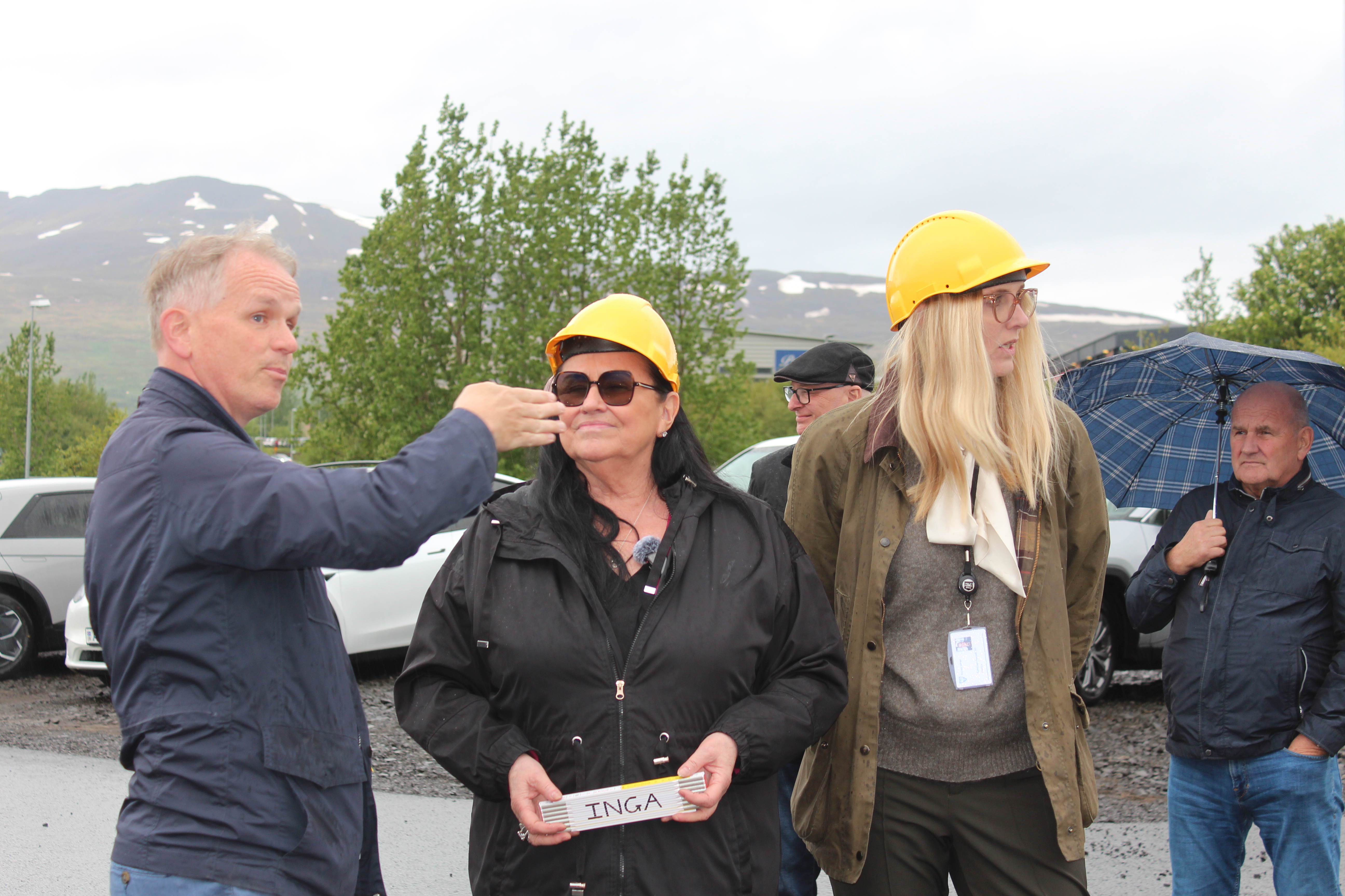 Pétur Ingi Haraldsson sviðsstjóri Skipulagssviðs Akureyrarbæjar ræðir við Ingu Sæland ráðherra og Ásthildi Sturludóttur bæjarstjóra á Akureyri þegar samningur um uppbyggingu hjúkrunarheimilis við Þursaholt var undirritaður í fyrravor. Nú er búið að bjóða verkið út. Á myndinni sést í þá Karl Erlendsson formann Félags eldri borgara á Akureyri og Björn Snæbjörnsson formann Landsambands eldri borgara.