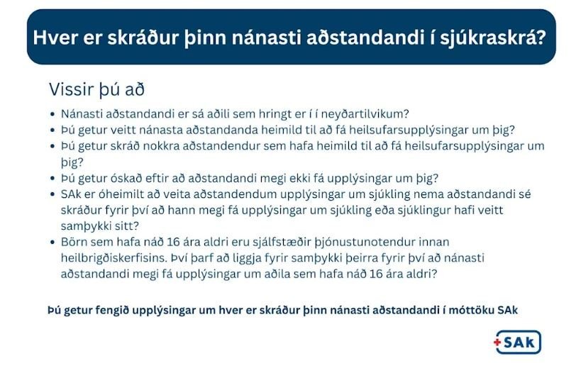 Þú getur fengið upplýsingar um hver er skráður þinn nánasti aðstandandi í móttöku SAk