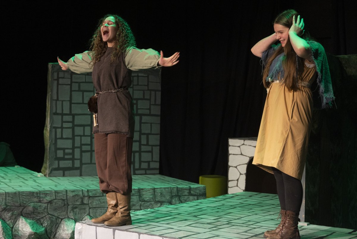 Skemmtilegt samstarf hefur verið við Brekkuskóla um uppfærsluna á Ronju. Í sýningunni koma fram fimm nemendur Brekkuskóla. Hér eru til hægri tveir svokallaðir rassálfar, leiknir af tveimur stúlkum úr 5. bekk Brekkuskóla.