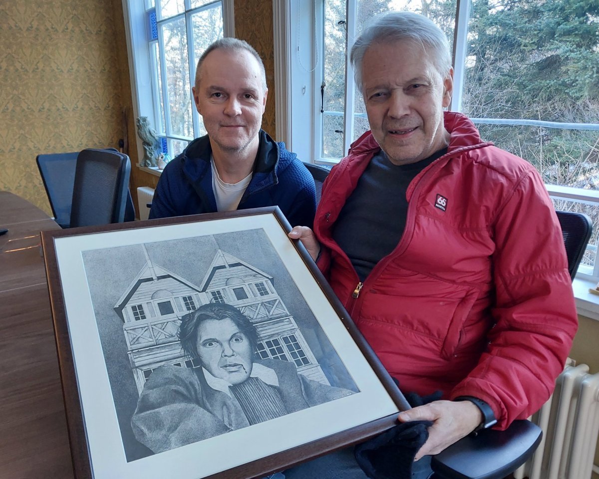 Um er að ræða blýantsteikningu sem Guðmundur Oddur gerði af Birni 1976, árið sem Björn útskrifaðist frá MA. Í bakgrunni er óþekkt timburhús sem svipar til Gamla skóla. Neðst á myndinni til hægri er áritunin „Guðmundur Oddur ´76“. Kunnum við Birni hinar bestu þakkir fyrir höfðinglega gjöf. Hún mun sóma sér vel með verkum annarra listamanna í stóru safni skólans.