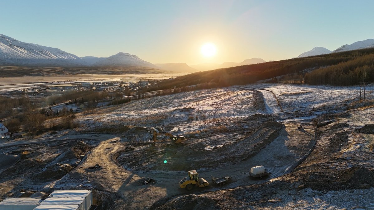 Framkvæmdir við vegkerfi, fráveitu og ofanvatnskerfi í Ölduhverfi sem rís í Eyjafjarðarsveit ganga vel.