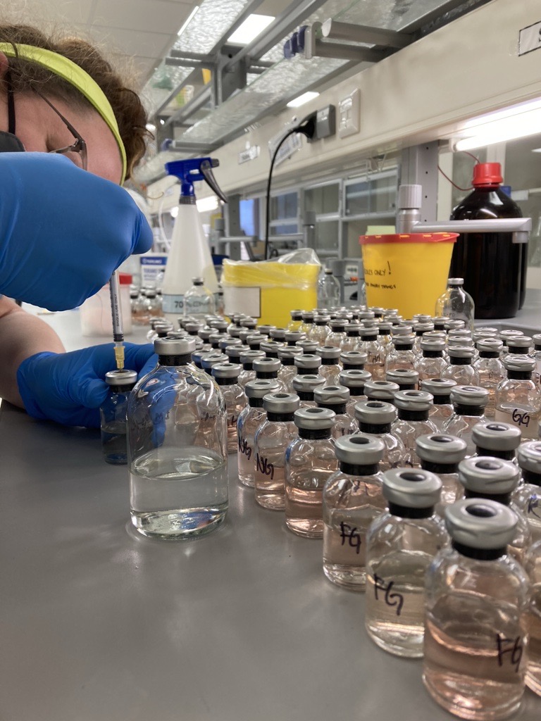 Patrycja ákvað að hoppa út í djúpu laugina þegar hún kom til Íslands, því rannsóknarefni Sean og Evu eiga lítið skylt við jarðveg. “Við höfum helst verið að rannsaka hitakærar, loftfælnar bakteríur sem oftast koma úr heitum hverum”, segir Eva en að vinna með loftfælnar örverur er töluvert öðruvísi en að vinna með örverur sem þurfa súrefni til þess að vaxa og dafna.