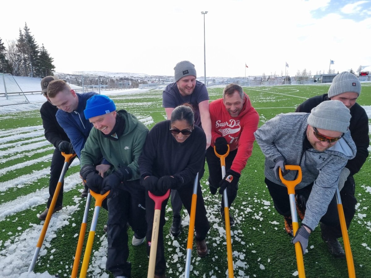 Það var virkilega ánægjulegt að sjá samstöðuna á íþróttasvæði Völsungs á dögunum þegar sjálfboðaliðar tóku sig til og hreinsuðu völlinn svo bæði meistaraflokkur karla og kvenna í knattspyrnu gætu spilað fótbolta við aðkomulið í góðu en köldu veðri. Eins og menn vita þá hefur snjóað töluvert á Húsavík síðustu daga og reyndar vikur. Það var því töluvert verk að hreinsa völlinn en samstaðan sigrar alltaf, ekki spurning.