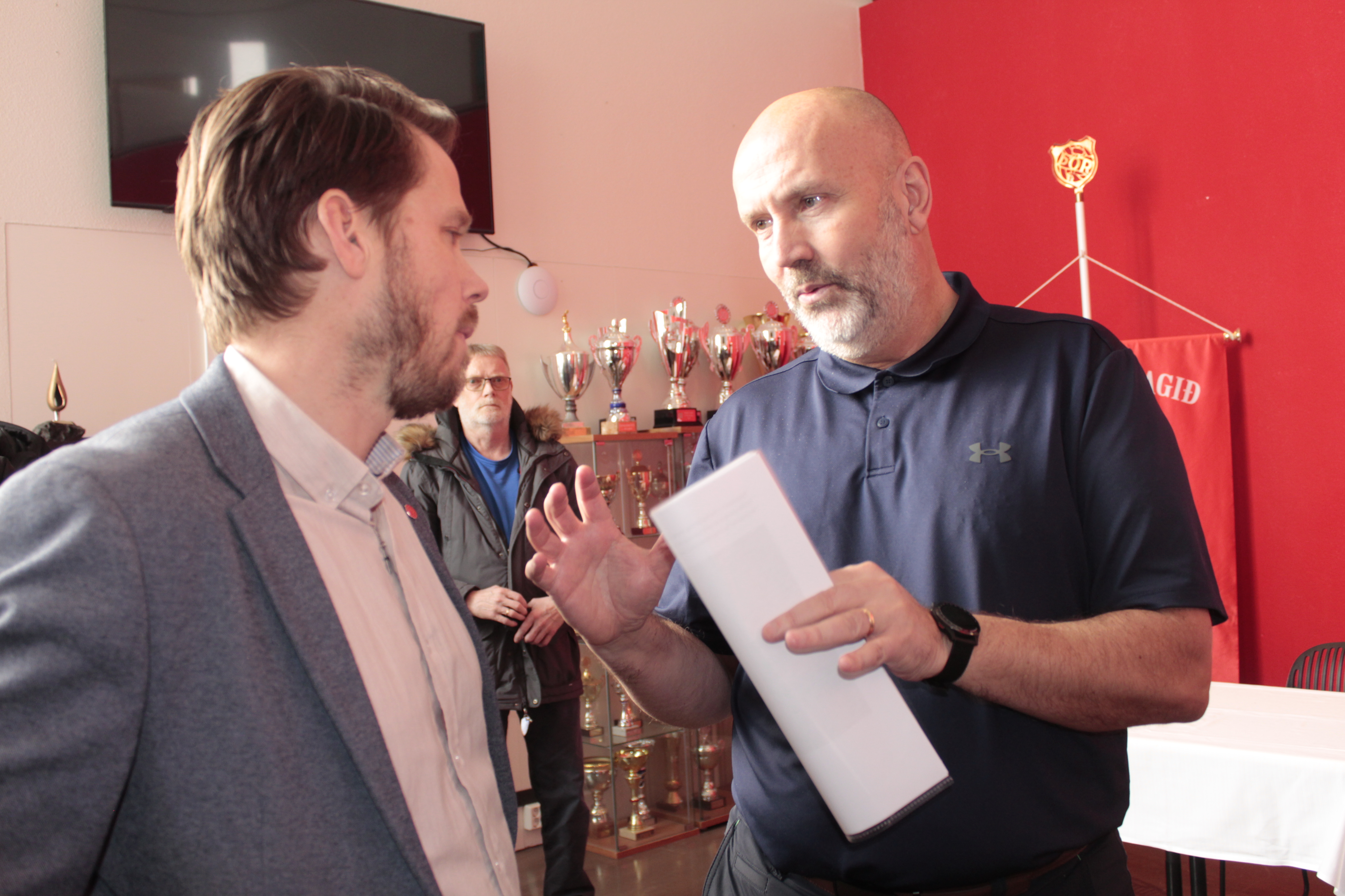 „Er gott í þessu,“ gæti Oddur Helgi Halldórsson fyrrum bæjarfulltrúi og Þórsari verið að spyrja Nóa sem mætti í sínu fínasta pússi.