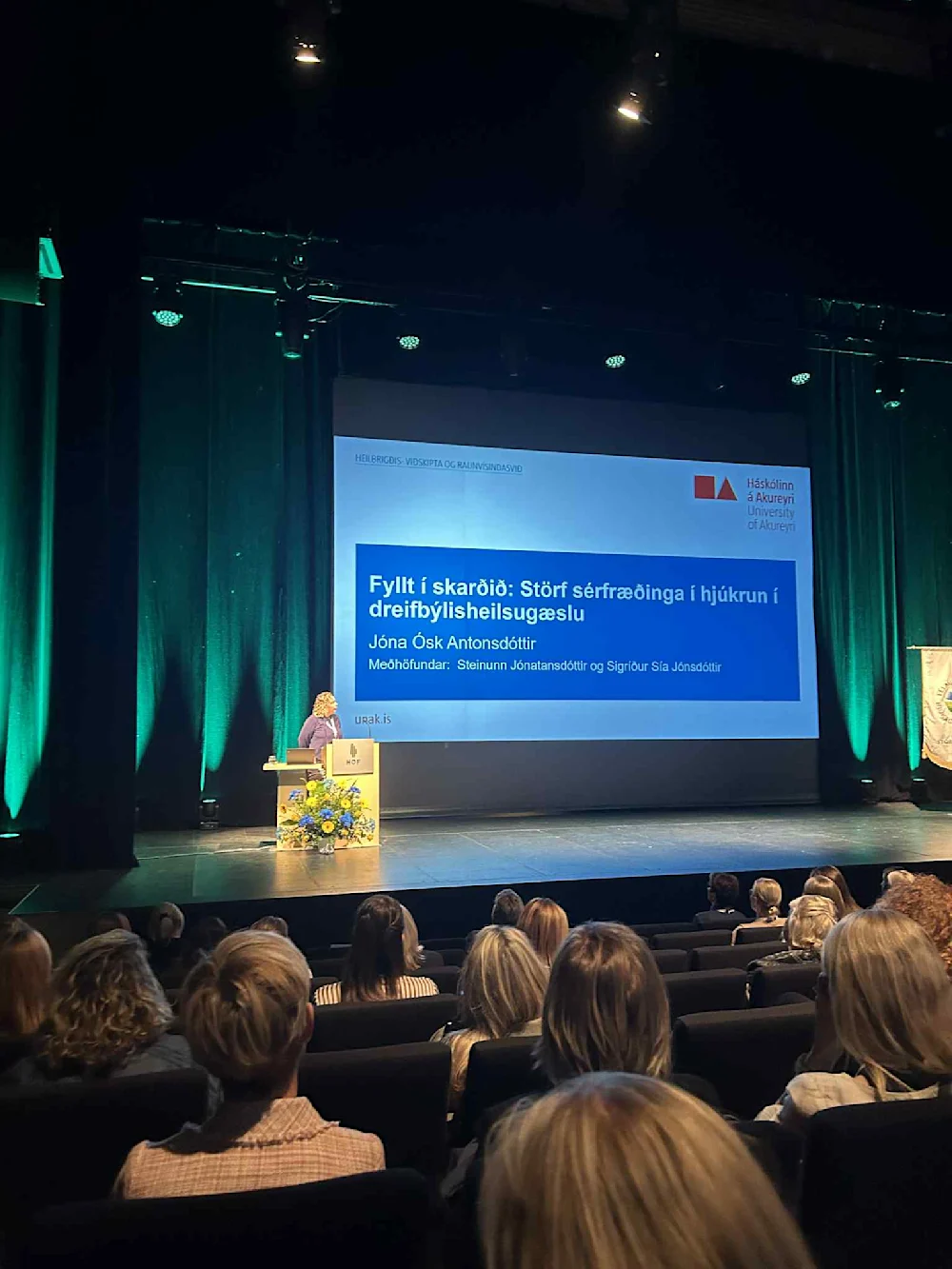 Hjúkrunarfræðingar á litlum heilsugæslum í dreifbýli sinna oft fjölbreyttari verkefnum en á stærri stöðum. Þar eru læknar stundum bara hluta úr viku til staðar og langt getur verið í næsta sjúkrahús. Verkefnin geta þó verið jafnfjölbreytileg og á stærri stöðum. Jóna Ósk Antonsdóttir, hjúkrunarfræðingur hjá HSN í Reykjahlíð, hefur nýlokið meistaragráðu frá Háskólanum á Akureyri með áherslu á heilsugæslu á landsbyggðinni frá Háskólanum á Akureyri. Hún kynnti nýlega meistaraverkefnið sitt Fyllt í skarðið: Störf sérfræðinga í heilsugæsluhjúkrun í dreifbýli á ráðstefnunni Hjúkrun 2025, þar sem hún velti upp hvort landsbyggðarhjúkrun ætti að vera sérsvið til menntunar.
