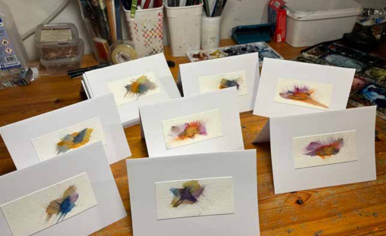 „Ég hef undanfarin tuttugu ár, ef ekki lengur, handmálað vatnslitakort. Ég var einmitt að klára kortin sem ég ætla að senda í ár. Allir fá mismunandi kort, því ég er með sérstakt kerfi á þessu.“