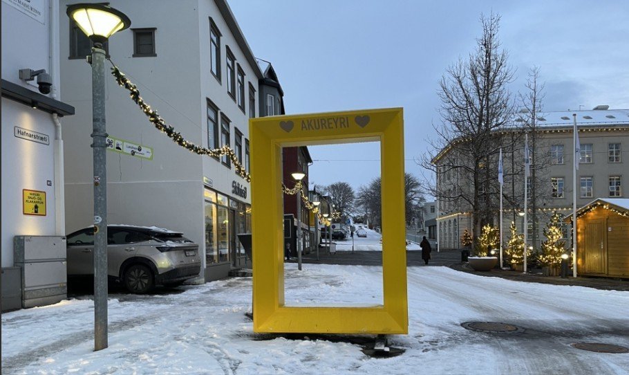 Svavar Pálsson sýslumaður fyrir hönd Sýslumannsins á Norðurlandi eystra hefur óskað eftir því við skipulagsráð á Akureyri að endurskoðuð verði staðsetning gula myndarammans sem er rétt fyrir utan húsakynni sýslumanns og fleiri stofnana við Hafnarstræti á Akureyri.