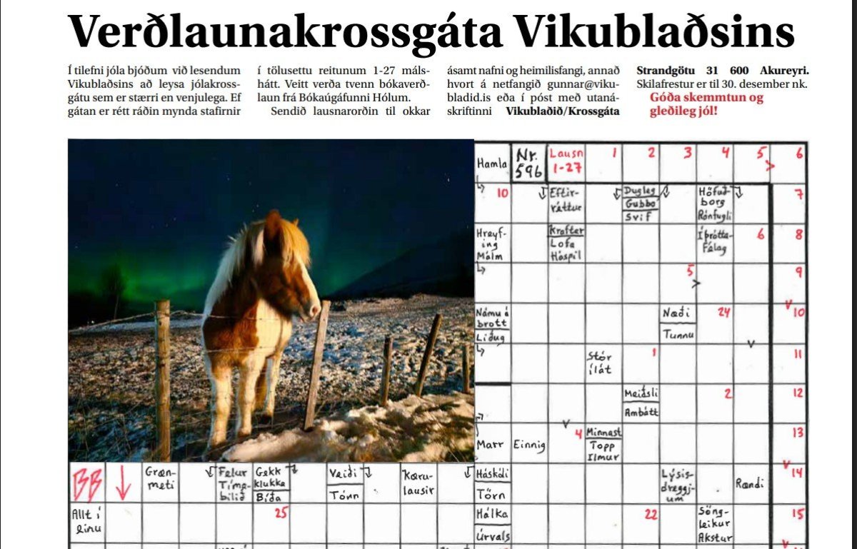 Dregið hefur verið úr innsendum lausnum í Jólakrossgátu Vikublaðsins, en fjöldi innsendra lausna hefur líklega aldrei verið meiri í tíð þess sem hér slær inn þennan texta ( frá árinu 2008) og það er ljóst að krossgátur njóta vinsælda.