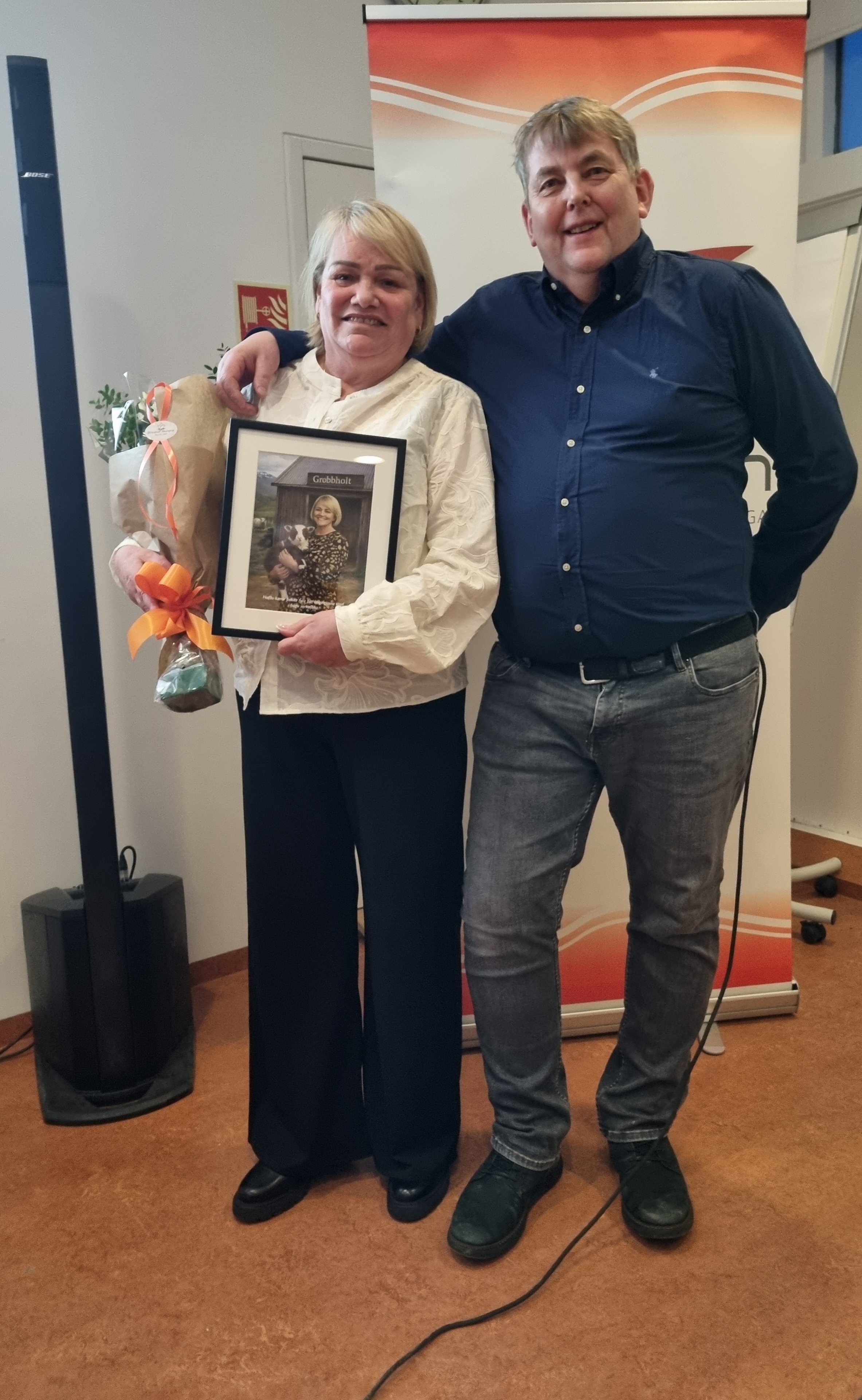 Anna Júlíusdóttir Einingarformaður var leyst út með smá glaðningi en hún hefur tekið þátt í verkalýðsstörfum lengi. Með henni er Aðalsteinn Árni Baldursson Framsýnarformaður.