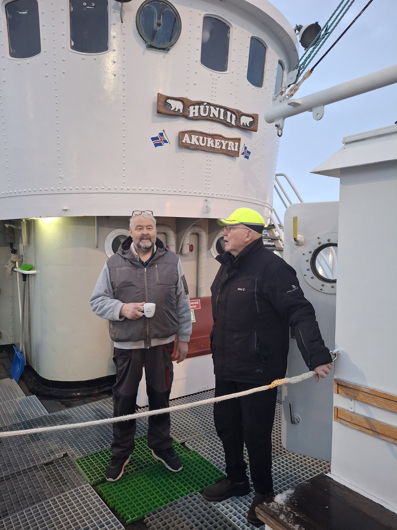 Atli Jónsson og Þorsteinn Pétursson höfðu margt að spjalla en Atli var í eina tíð skipverji á Húna 1974 til 1978, báturinn hét raunar á þeim tíma Haukafell.